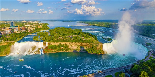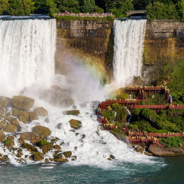 After an included breakfast, we will visit the Niagara Falls Visitor Center, where you can pick up maps, brochures, and souvenirs before we head to the Niagara Falls USA Observation Tower for a panoramic view of all three falls. Next, we will board the iconic Maid of the Mist boat ride, getting up close to the falls to feel the mist and hear the thunderous roar. We will enjoy lunch at the Top of the Falls Restaurant, featuring amazing views through floor-to-ceiling windows. Our adventure continues at the Cave of the Winds, a thrilling walk on the falls' "wild side" that begins with an elevator ride 175 feet down into the gorge; outfitted with souvenir rain ponchos and specialty sandals, you will make your way along wooden walkways to the Hurricane Deck, where the rushing Bridal Veil Falls creates tropical-storm-like conditions and an unforgettable experience. We will then visit Goat Island-a wooded island that separates the American falls from the Canadian side-and Three Sisters Island, a trio of small islands connected to Goat Island by footbridges. After our visits, we will return to the hotel, where you may enjoy free time on your own, take a relaxing stroll, or try your luck at the Seneca Niagara Casino.